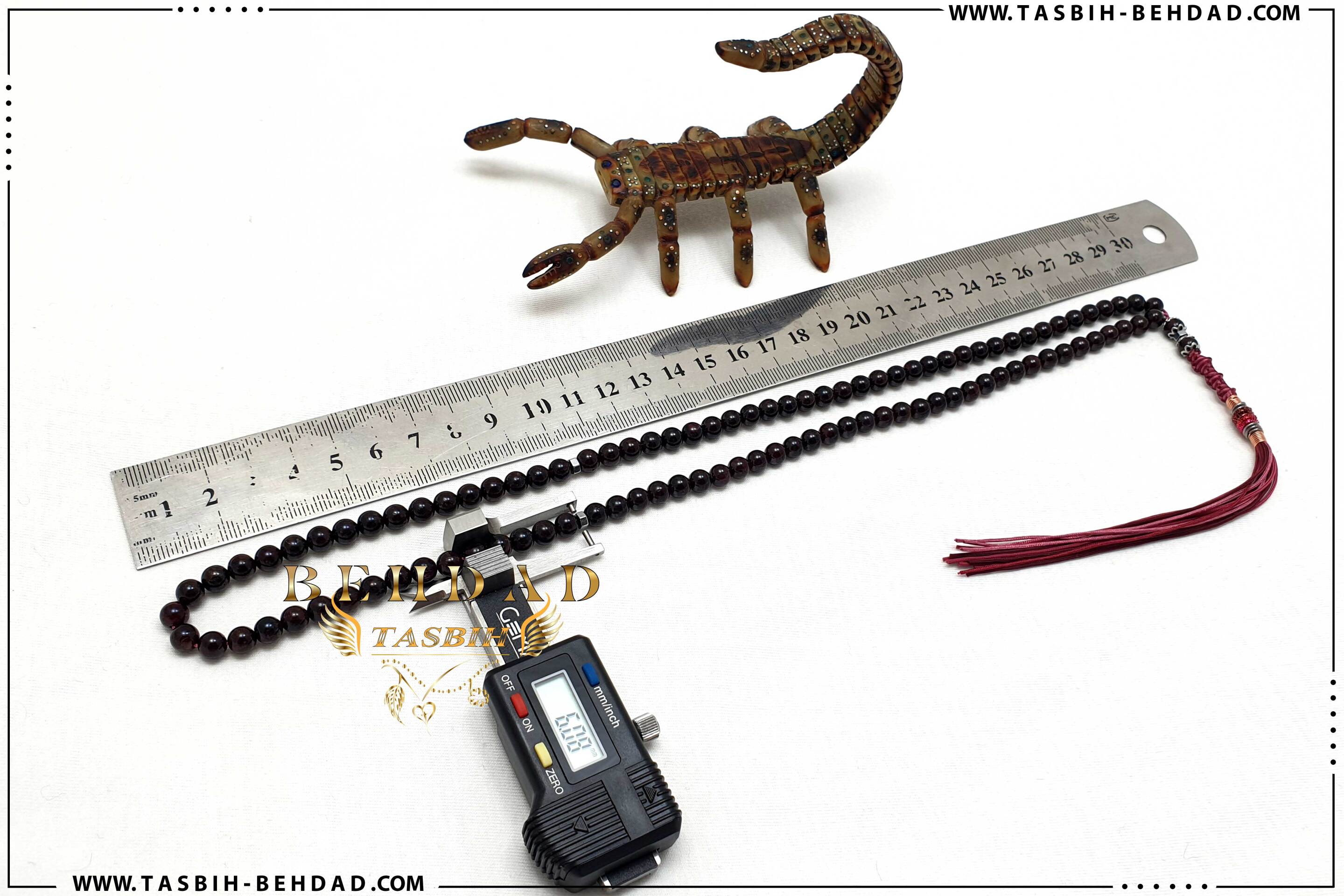 این تسبیح لوکس از 101 عدد مهره سنگ معدنی پرخاصیت گارنت ( یاقوت سیلان ) سایز 6 میلیمتر ساخته شده. سنگ های یاقوت بکار رفته در این تسبیح لاکچری ، کاملا طبیعی ، اصلی و بسیار با کیفیت می باشد. سایز مهره ها توسط دستگاه کولیس با دقت بسیار بالا اندازه گیری شده و به ترتیب کنار هم چیده شده اند. نخ های بکار رفته در این تسبیح ، خارجی و از بهترین برند موجود در بازار بوده که به این راحتی ها پاره نشده و کِش نمی آیند. بافت محکم و خوش رنگ مکرومه در این تسبیح ، موجب زیبایی دو چندان آن شده است. سیم و فنر این تسبیح زیبا نیز ، برزیلی بوده و دارای رنگ ثابت و استحکام بالا می باشد. این تسبیح که توسط کارگاه تولید تسبیح بهداد ساخته شده ، همراه با باکس مخصوص ، حضورتان تقدیم میگردد.