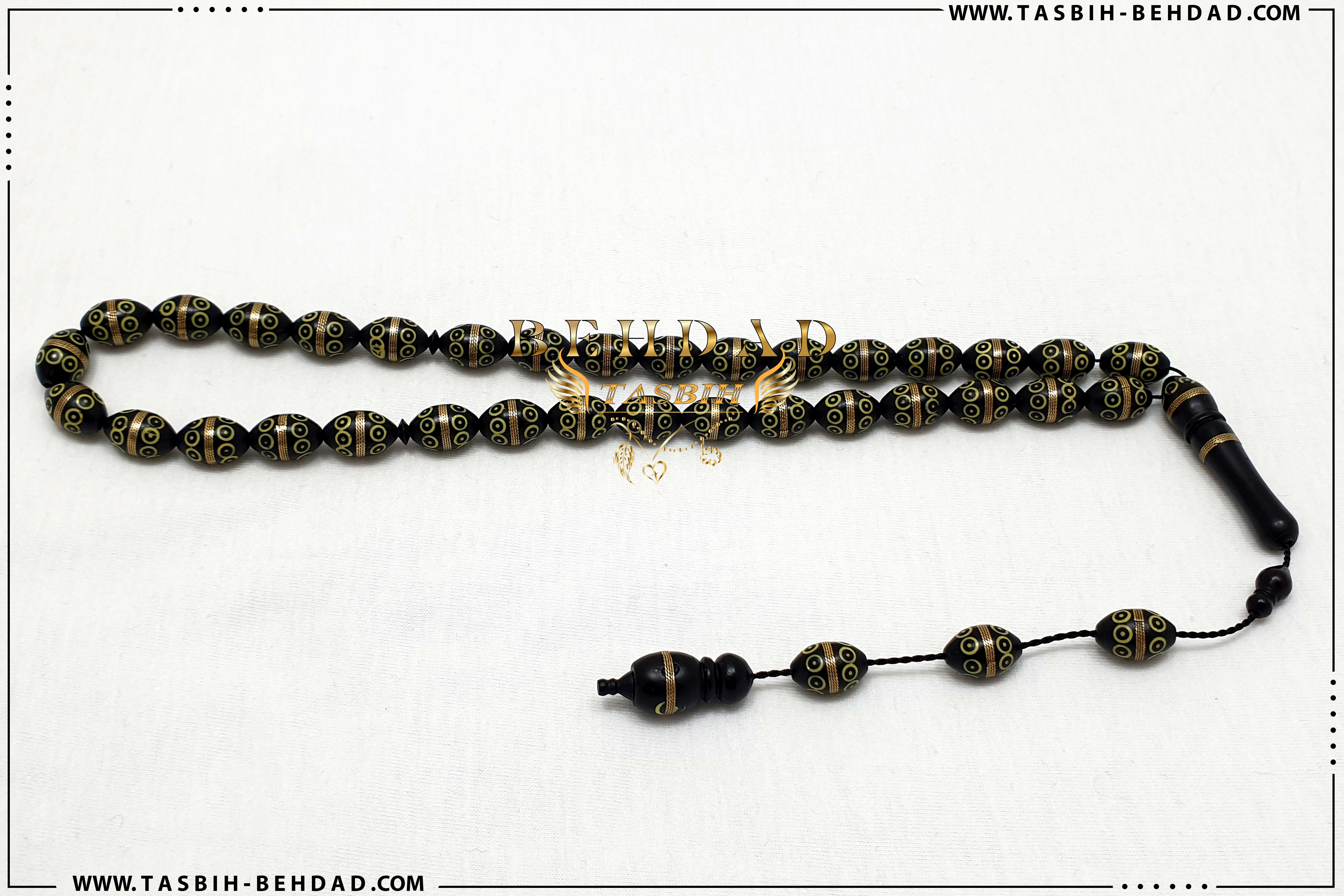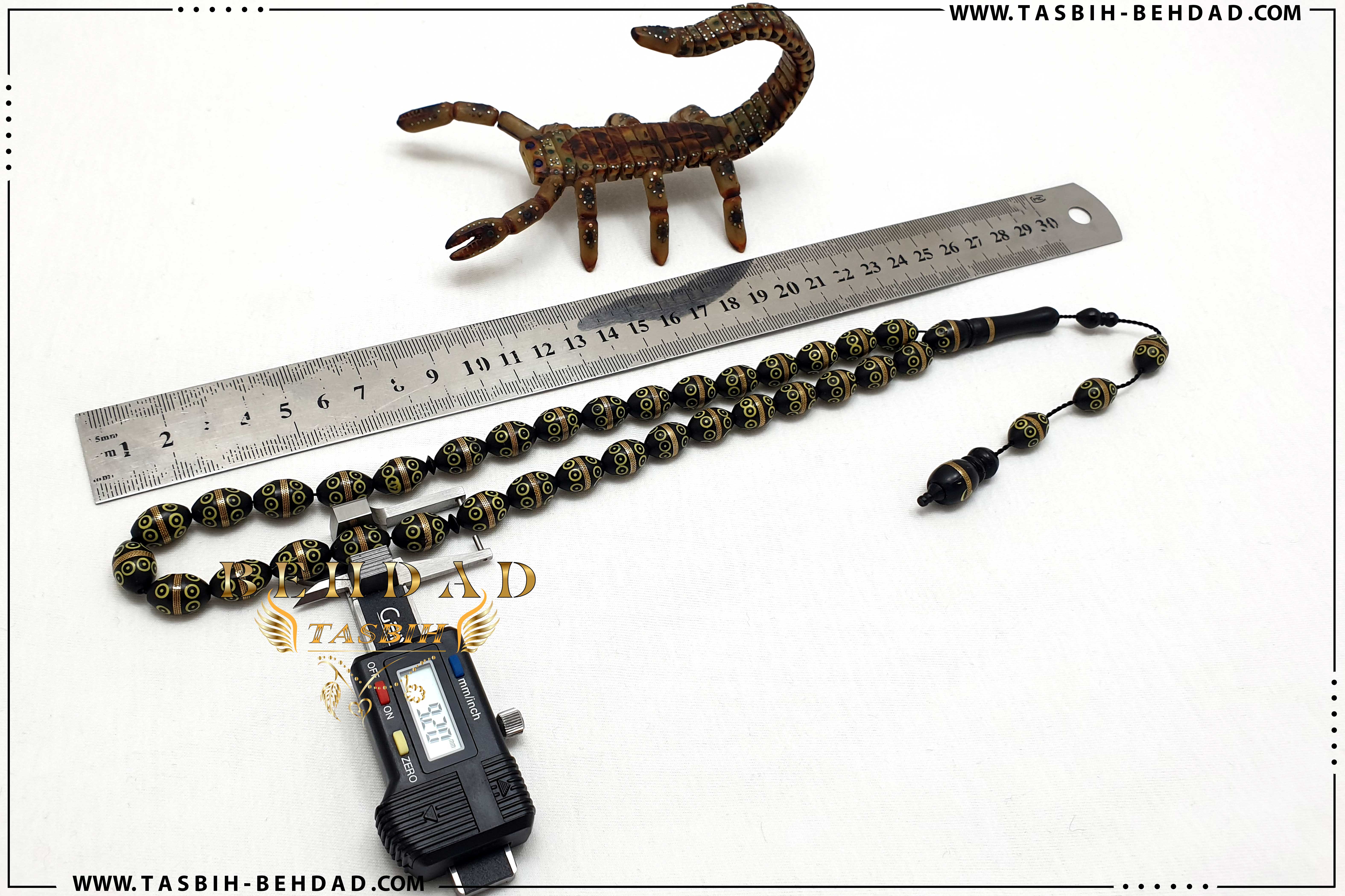 این تسبیح جذاب از 33 عدد مهره کشکول اصلی سایز 9 میلیمتر ساخته شده است. کشکول های بکار رفته در این تسبیح میناکاری شده و نوار کوب شده می باشند. نخ های بکار رفته در این تسبیح ، خارجی و از بهترین برند موجود در بازار بوده که به این راحتی ها پاره نشده و کِش نمی آیند. این تسبیح که توسط کارگاه تولید تسبیح بهداد مونتاژ شده ، همراه با باکس مخصوص ، حضورتان تقدیم میگردد.