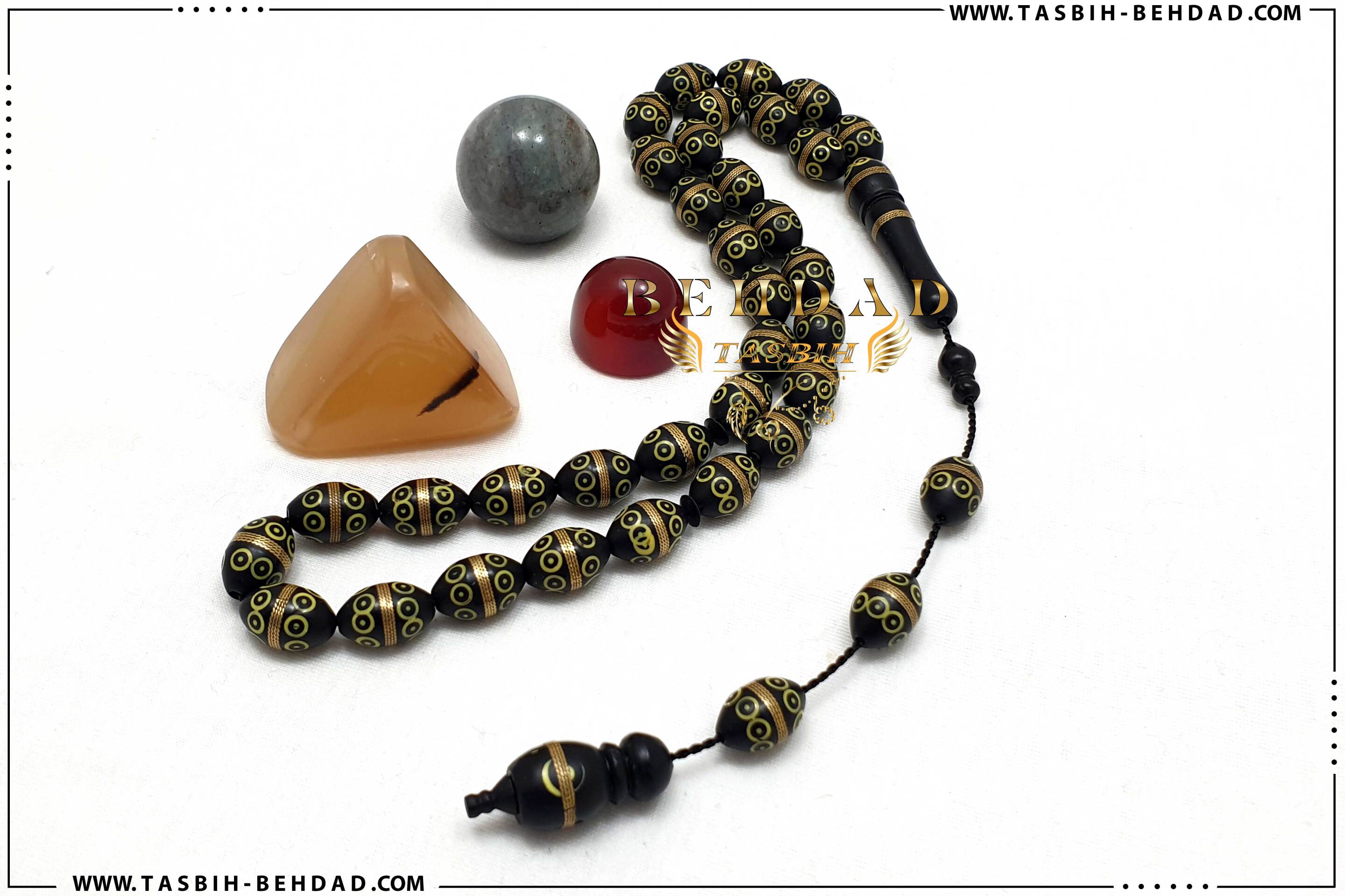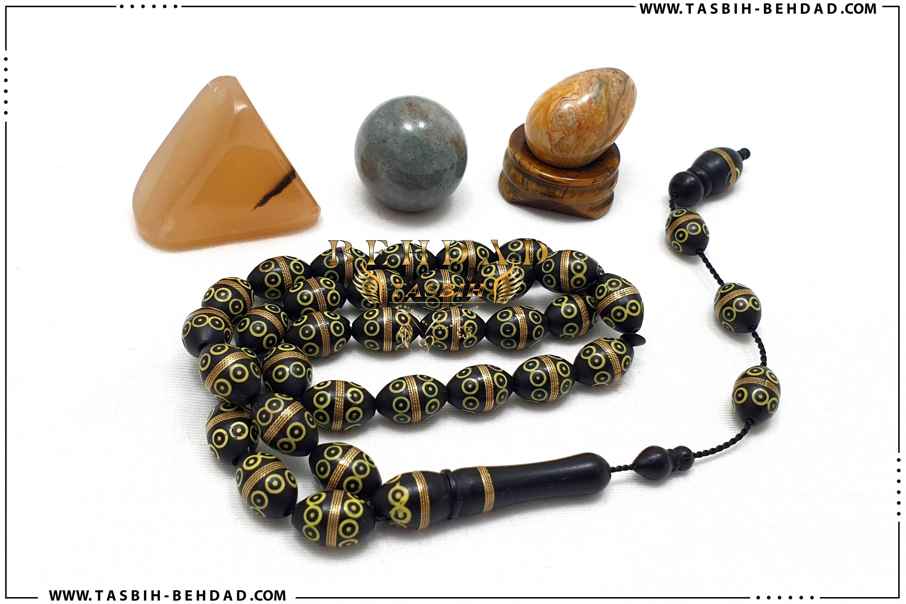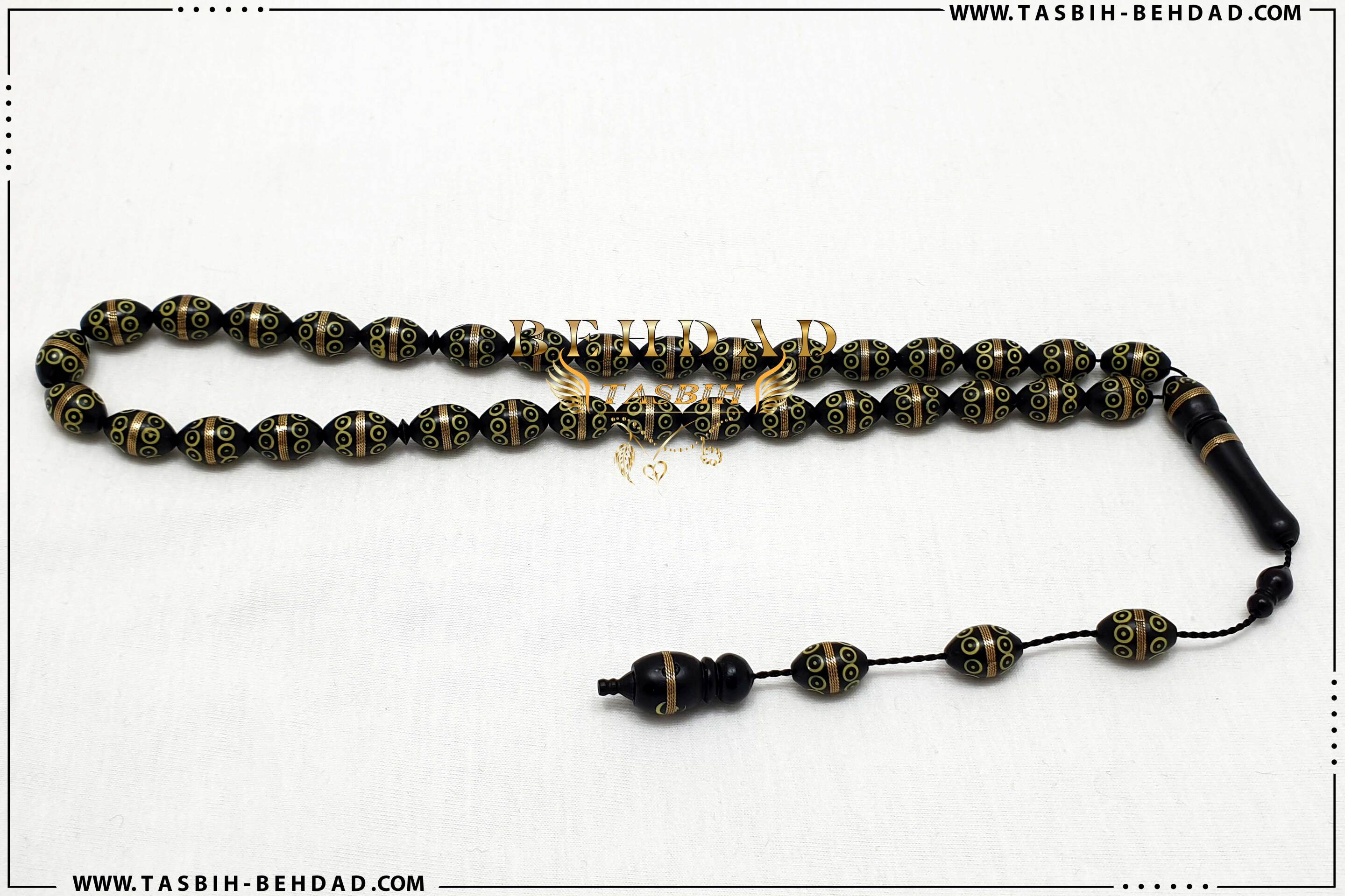 این تسبیح جذاب از 33 عدد مهره کشکول اصلی سایز 9 میلیمتر ساخته شده است. کشکول های بکار رفته در این تسبیح میناکاری شده و نوار کوب شده می باشند. نخ های بکار رفته در این تسبیح ، خارجی و از بهترین برند موجود در بازار بوده که به این راحتی ها پاره نشده و کِش نمی آیند. این تسبیح که توسط کارگاه تولید تسبیح بهداد مونتاژ شده ، همراه با باکس مخصوص ، حضورتان تقدیم میگردد.