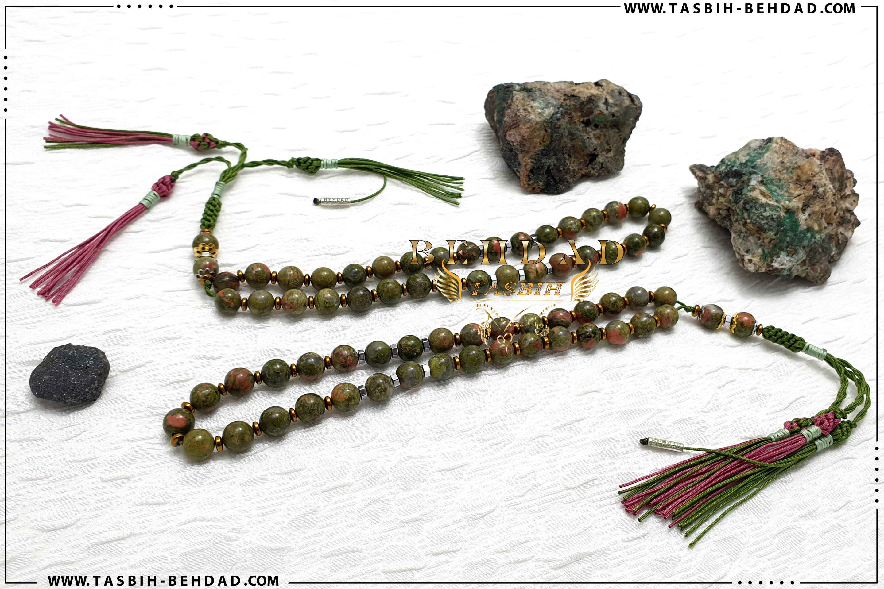 این تسبیح از 33 عدد مهره سنگ طبیعی پرخاصیت جاسپر سایز 9 میلیمتر تشکیل شده است. سنگ های جاسپر بکار رفته در این تسبیح، کاملا اصلی و بسیار با کیفیت می باشد. سایز مهره ها توسط دستگاه کولیس با دقت بالا اندازه گیری شده و به ترتیب کنار هم چیده شده اند. نخ های بکار رفته در این تسبیح، خارجی و از بهترین برند موجود در بازار بوده که به این راحتی ها پاره نشده و کِش نمی آیند. بافت محکم و خوش رنگ در این تسبیح، موجب زیبایی دو چندان آن شده است. این تسبیح که توسط کارگاه تولید تسبیح بهداد ساخته شده ، با مهر نقره بهداد ، همراه با باکس مخصوص ، حضورتان تقدیم میگردد.
