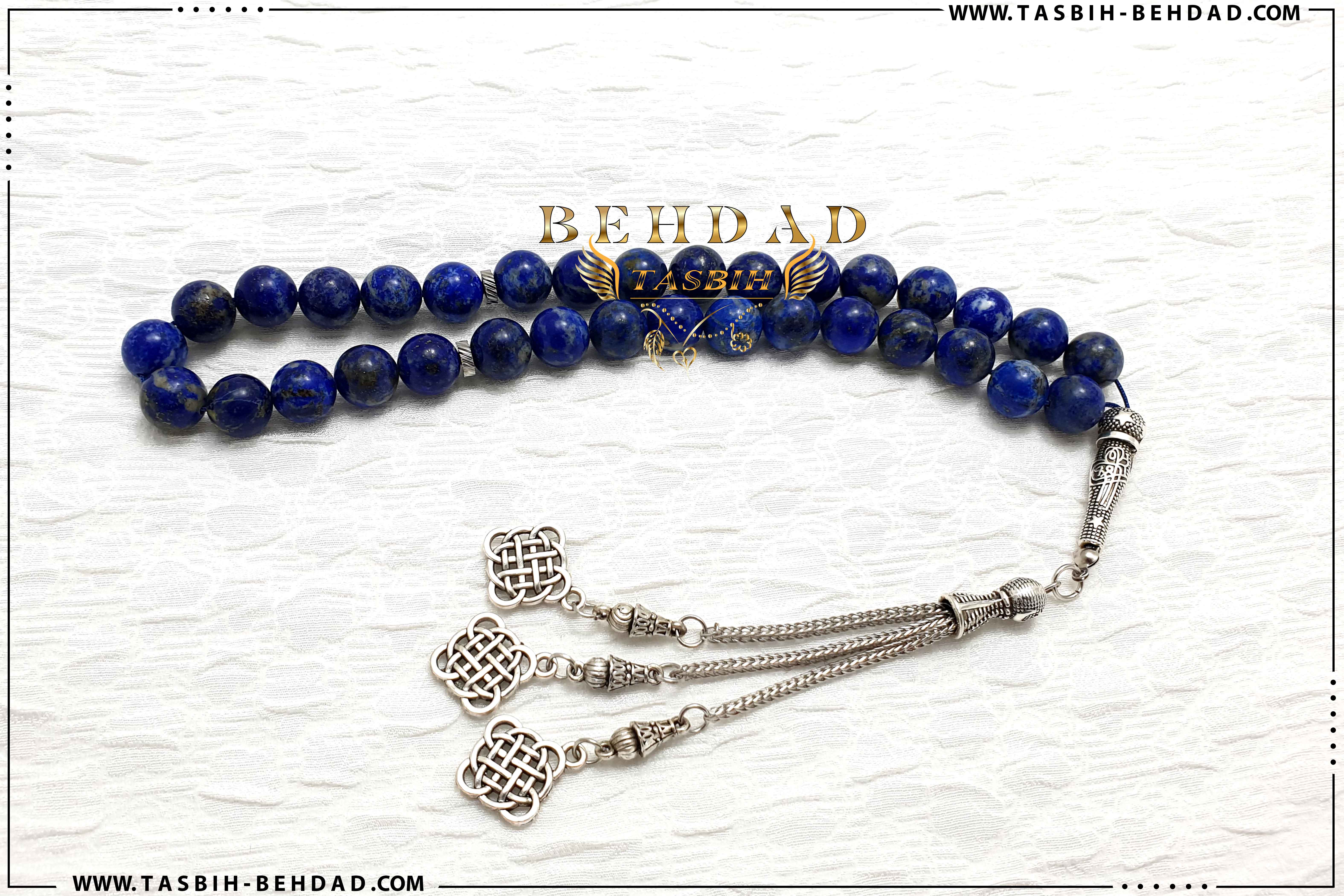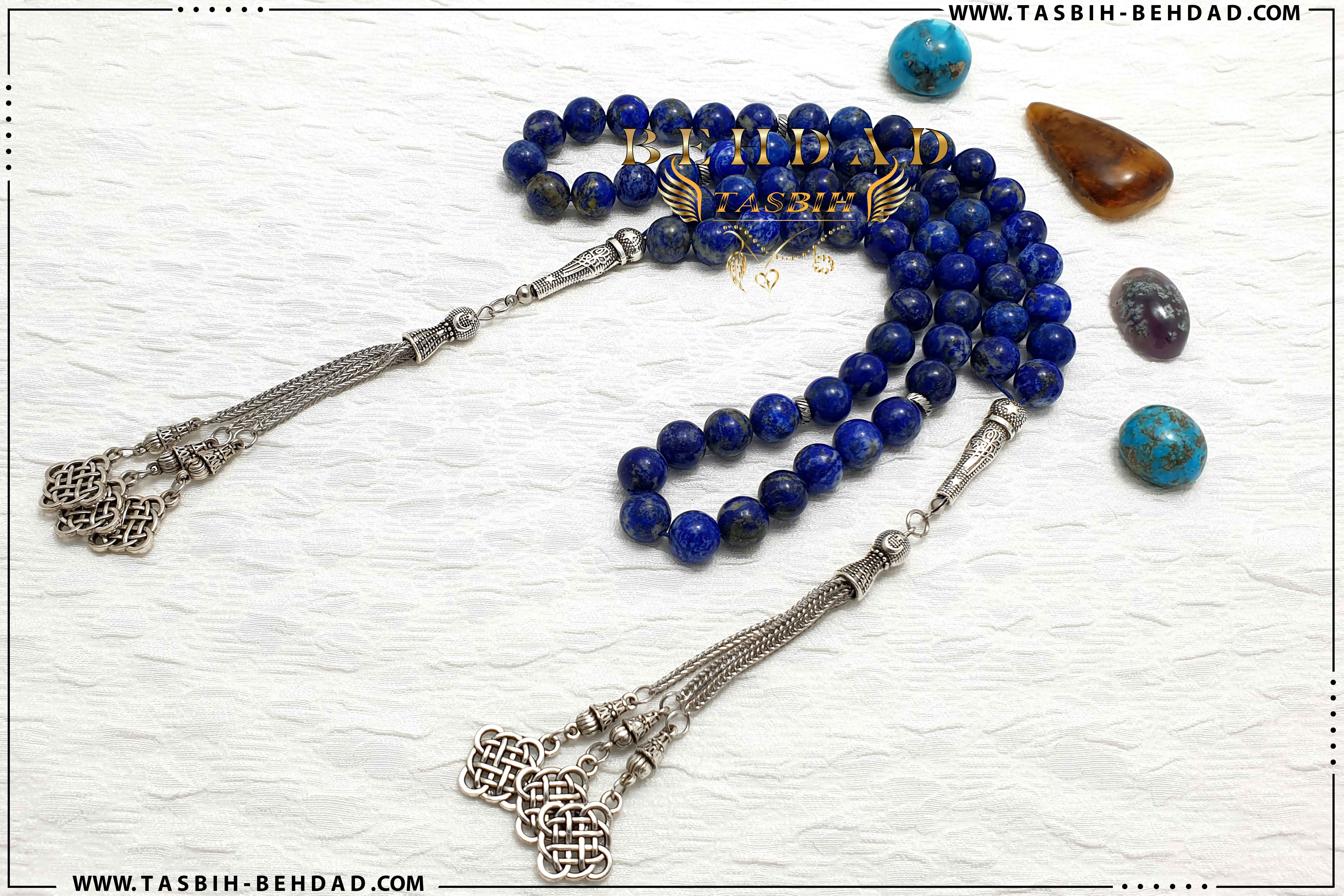 این تسبیح از 33 عدد مهره سنگ معدنی و پرخاصیت لاجورد بدخشان افغانستان سایز 10 میلیمتر با تراش گرد ساخته شده. سنگ های لاجورد بکار رفته در این تسبیح شیک، از افغانستان، کاملا اصلی و بسیار با کیفیت می باشند. سایز مهره ها توسط دستگاه کولیس با دقت بالا اندازه گیری شده و به ترتیب کنار هم چیده شده اند. این تسبیح زیبا با ست تمام استیل، همراه با باکس مخصوص ، حضورتان تقدیم میگردد.