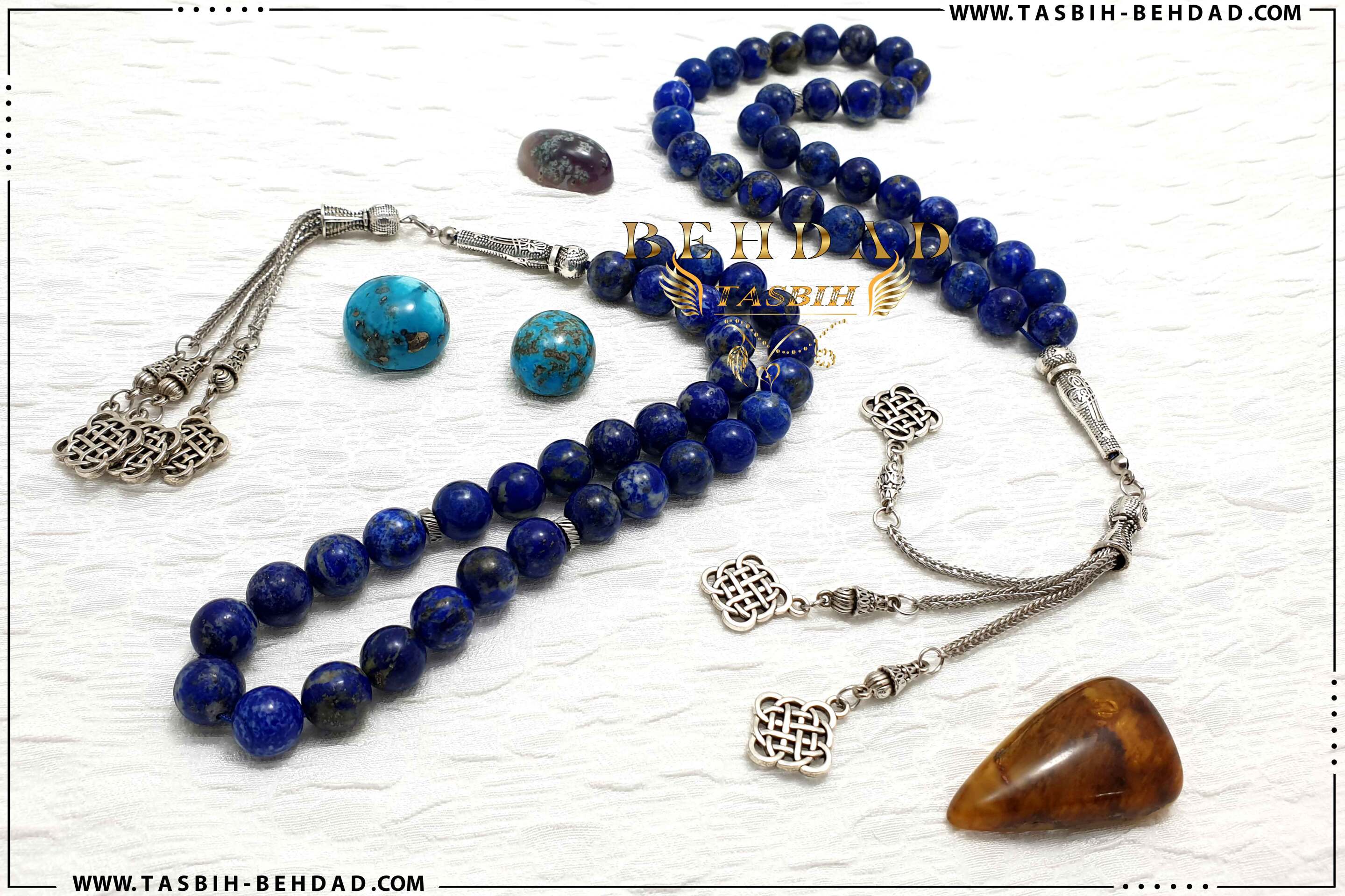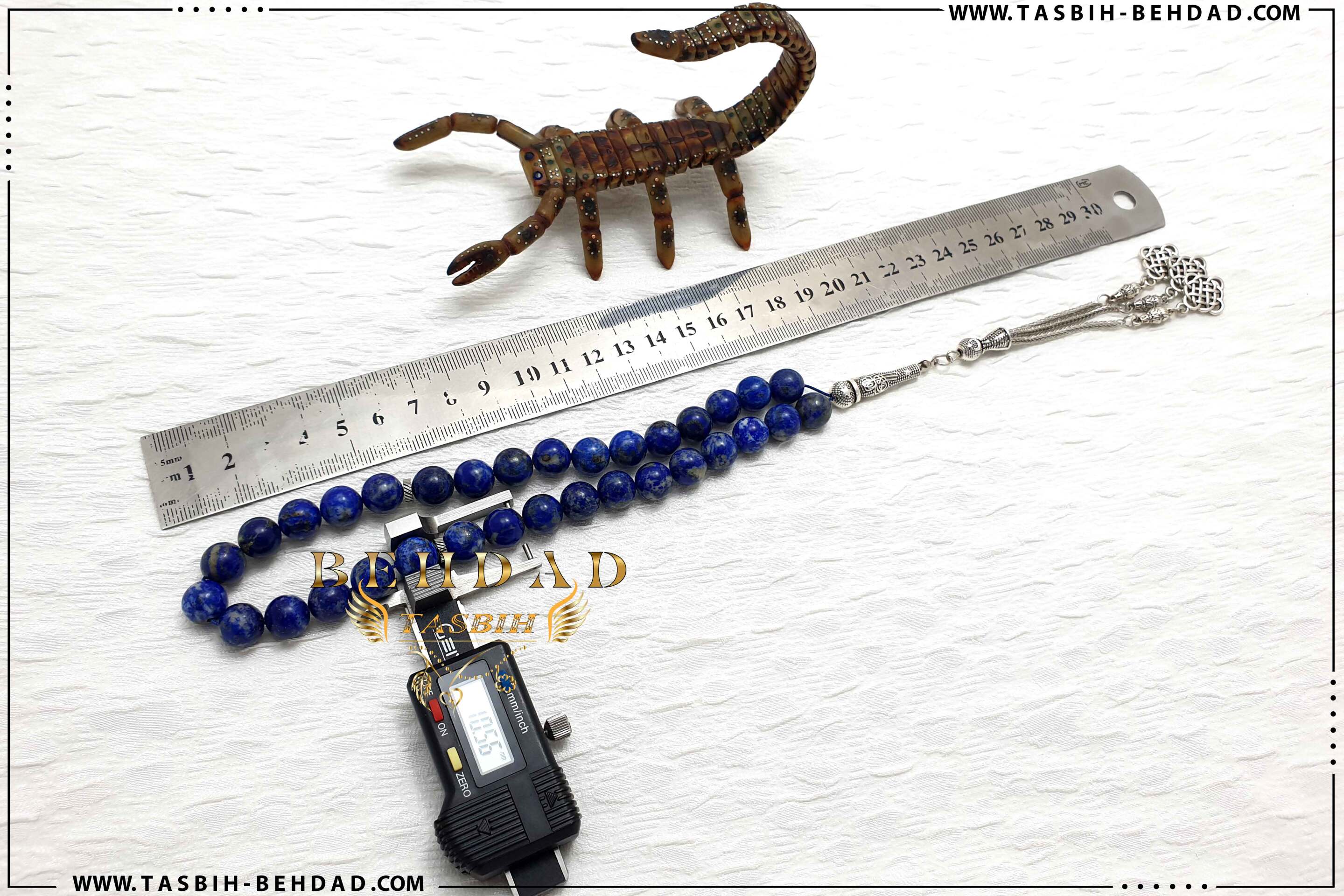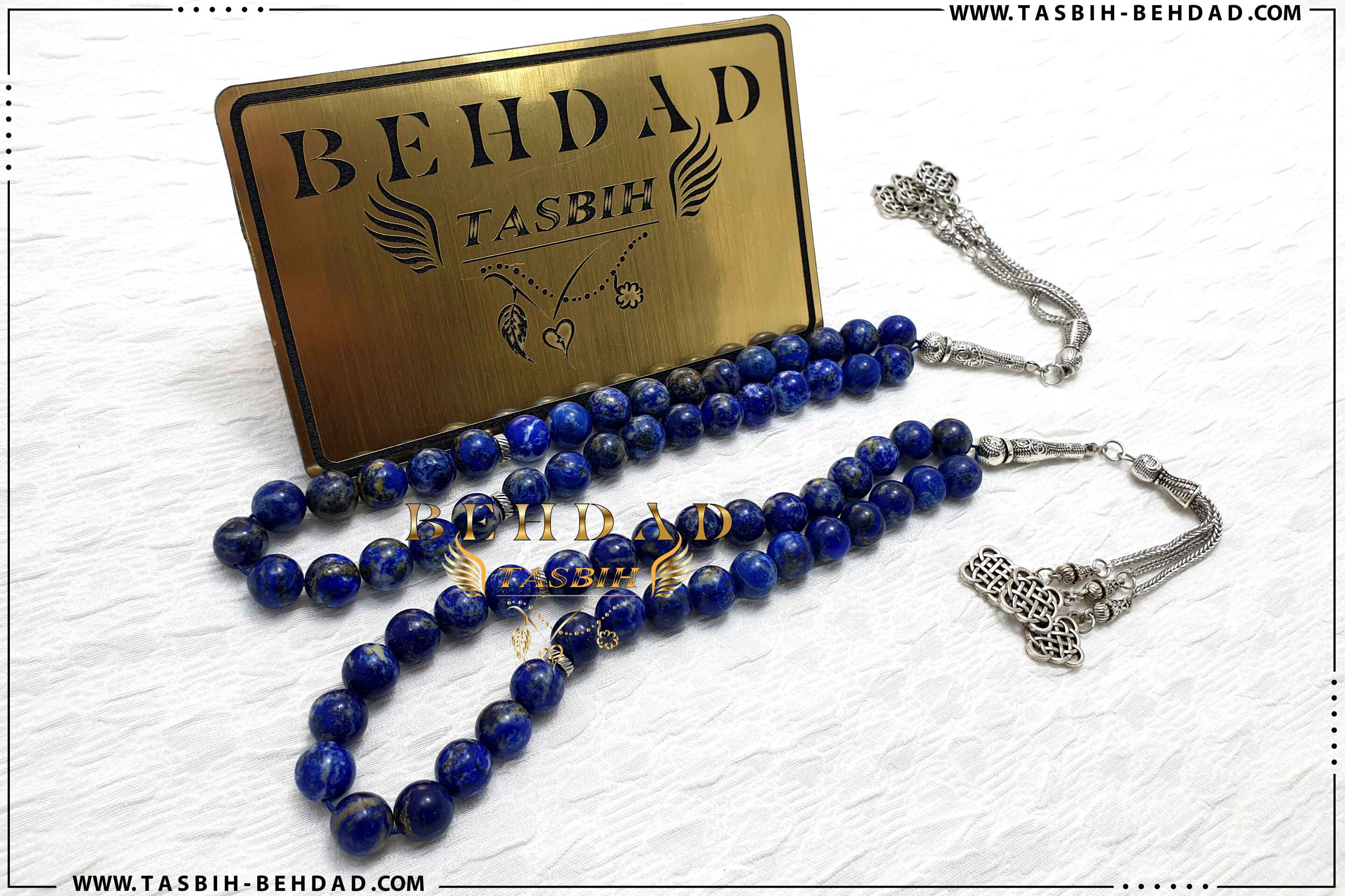 این تسبیح از 33 عدد مهره سنگ معدنی و پرخاصیت لاجورد بدخشان افغانستان سایز 10 میلیمتر با تراش گرد ساخته شده. سنگ های لاجورد بکار رفته در این تسبیح شیک، از افغانستان، کاملا اصلی و بسیار با کیفیت می باشند. سایز مهره ها توسط دستگاه کولیس با دقت بالا اندازه گیری شده و به ترتیب کنار هم چیده شده اند. این تسبیح زیبا با ست تمام استیل، همراه با باکس مخصوص ، حضورتان تقدیم میگردد.