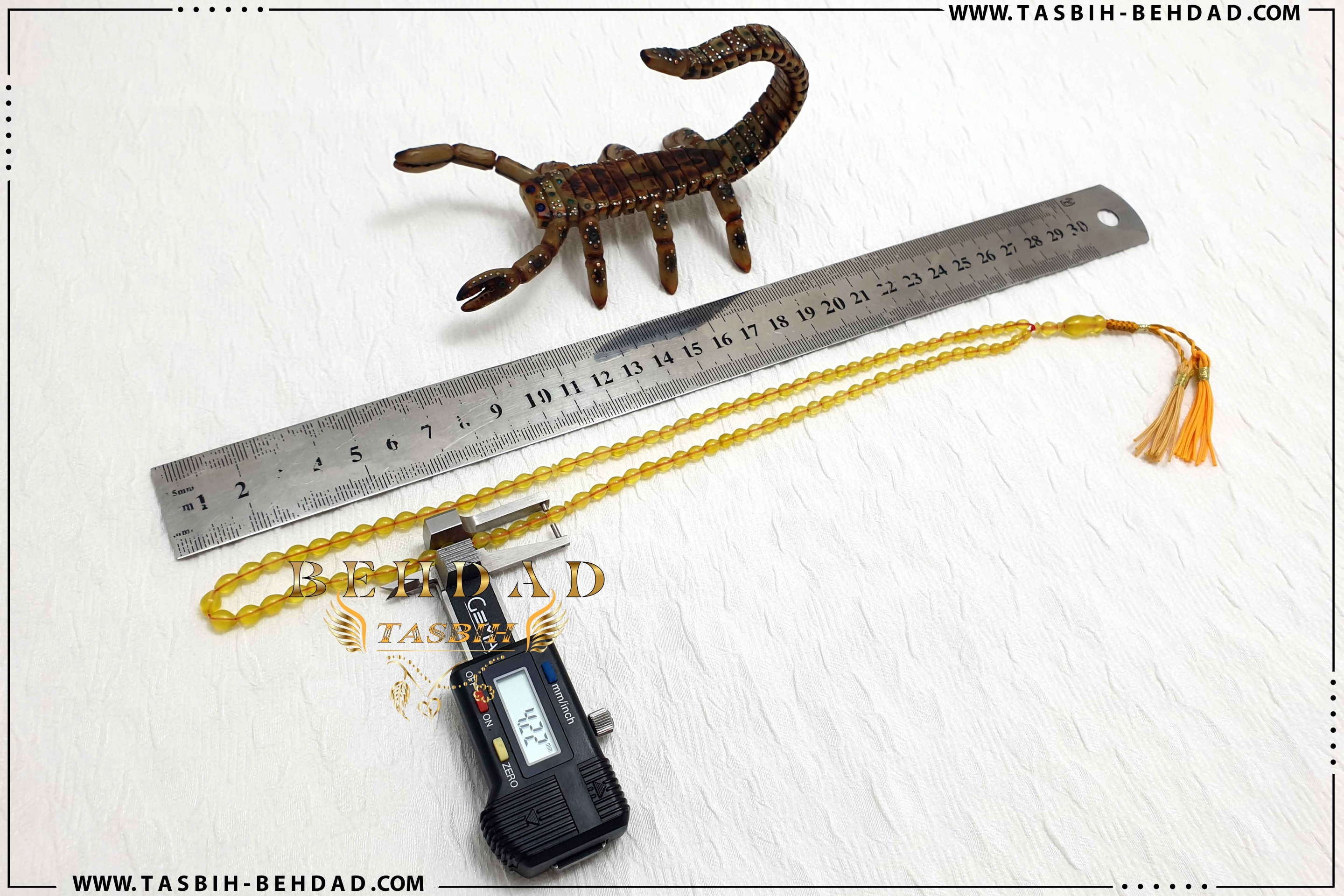 این تسبیح مینیاتوری، قواره ریز و کلکسیونی از 101 عدد مهره سنگ شاه مقصود مرغوب و درجه یک جلال آباد ، با اصالت و بسیار زیبا سایز 4 میلیمتر ساخته شده است. نخ های بکار رفته در این تسبیح جذاب ، خارجی و از بهترین برند موجود در بازار بوده که به این راحتی ها پاره نشده و کِش نمی آیند. بافت عربی محکم و خوش رنگ در این تسبیح ، موجب زیبایی دو چندان آن شده است. این تسبیح که توسط کارگاه تولید تسبیح بهداد مونتاژ شده ، همراه با باکس مخصوص، حضورتان تقدیم میگردد.